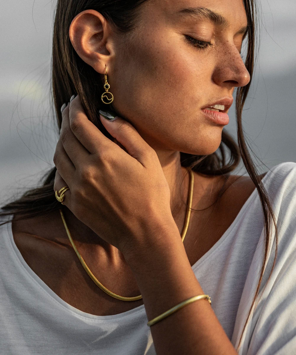 Nos bijoux en argent sterling 925 & or 18 carats sont protégés par un revêtement innovant, garantissant une résistance à l’eau et une durabilité exceptionnelle. Ce traitement prévient le ternissement et l’oxydation, tout en préservant leur éclat.