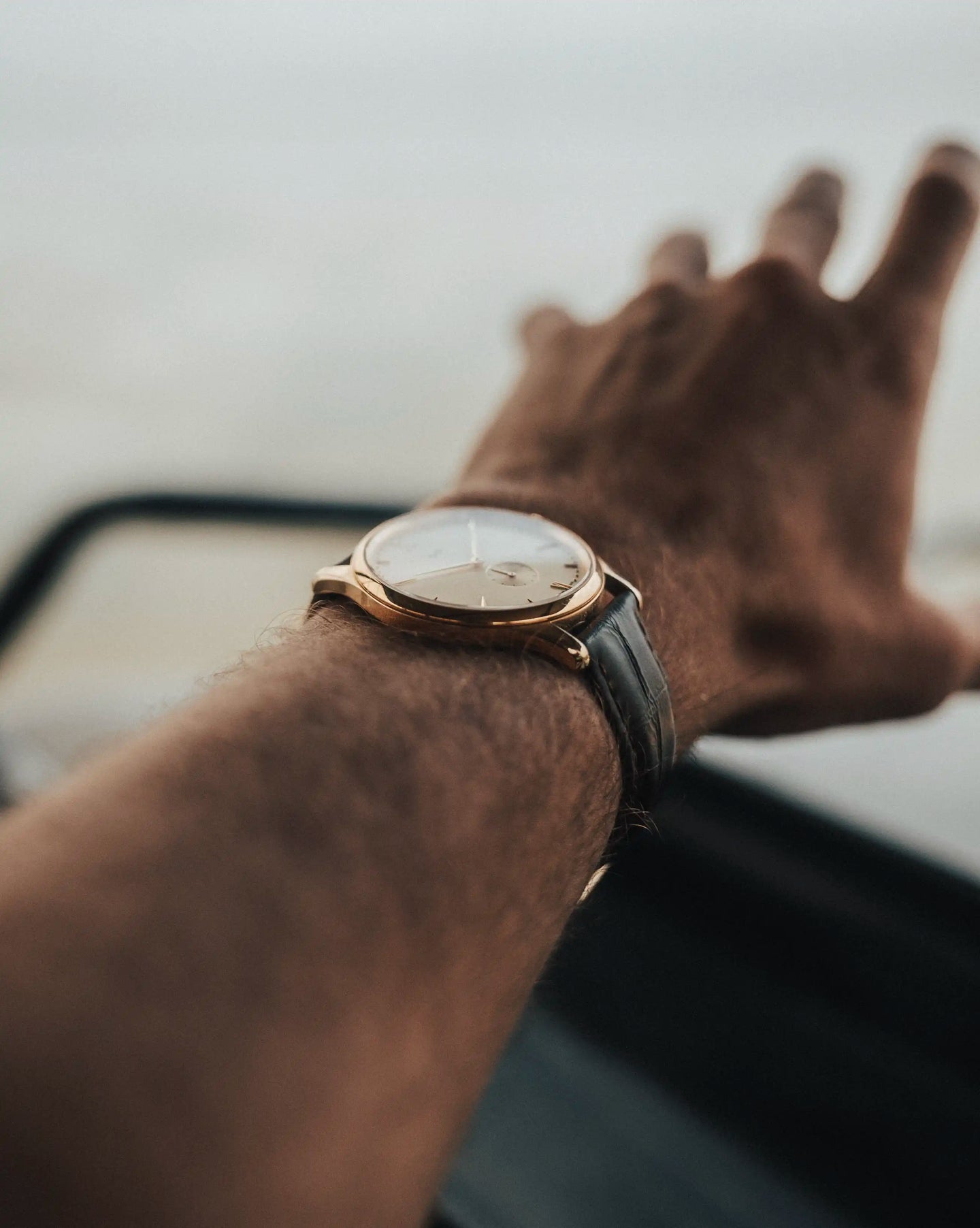 At first glance, the watches in our DARE collection may seem classic, but a closer look will reveal a carefully crafted aesthetic. Sleek lines set our watches apart from standard designs, while a discreet inscription of our logo and an inspiring message are engraved to subtly remind us of the importance of pushing your limits. On the crown, a compass is finely engraved, symbolizing the spirit of adventure that drives us. On the back, the watch’s specific details and the unique serial number of each piece reinforce its exclusive and personal character.