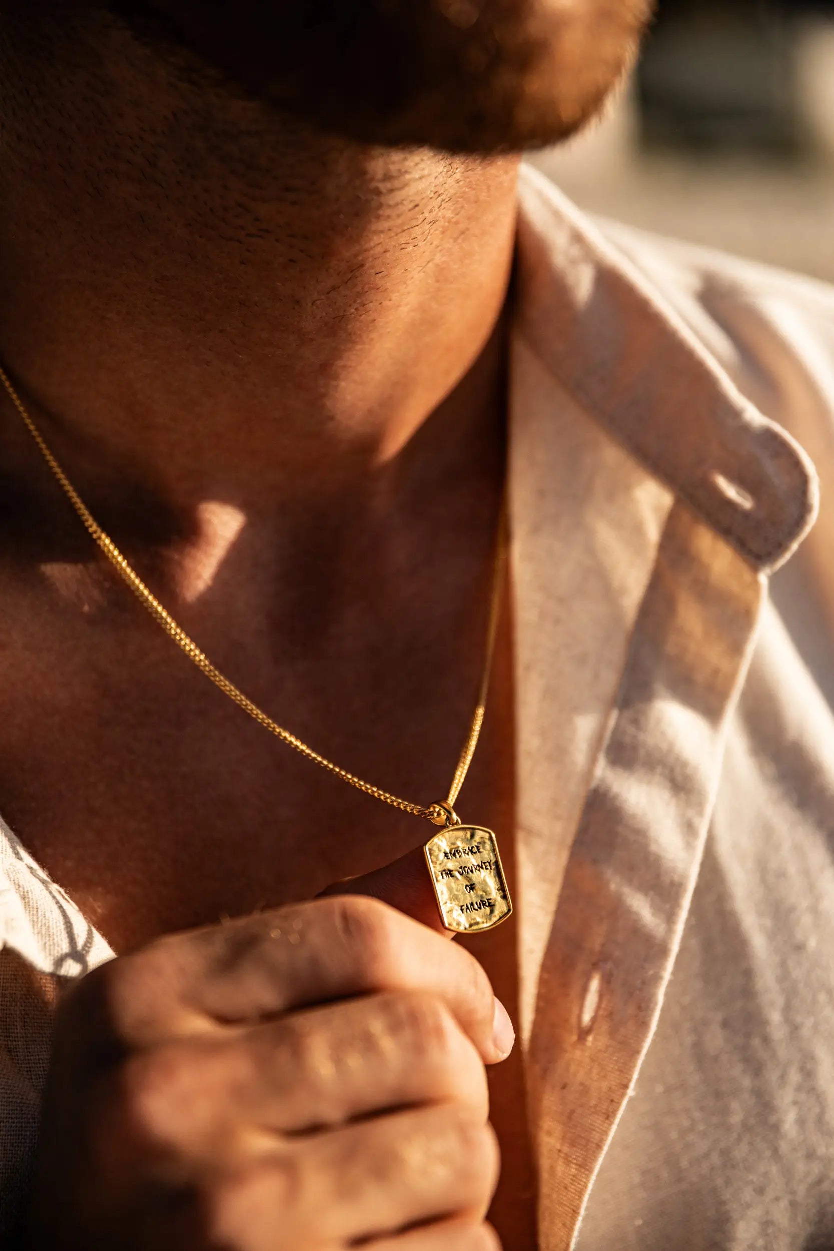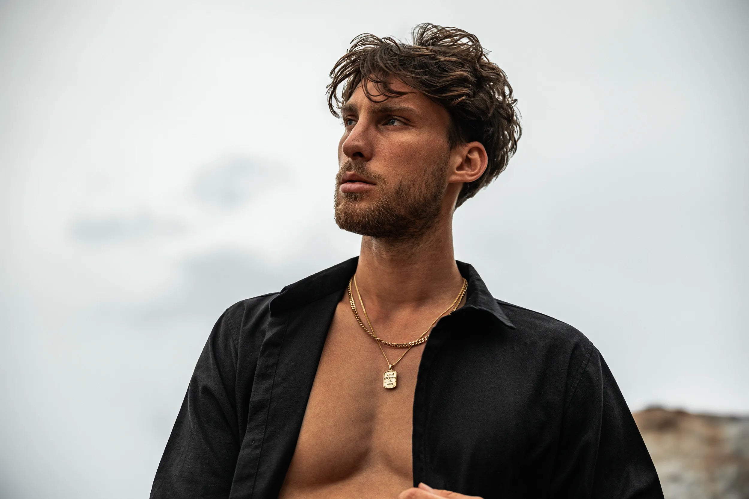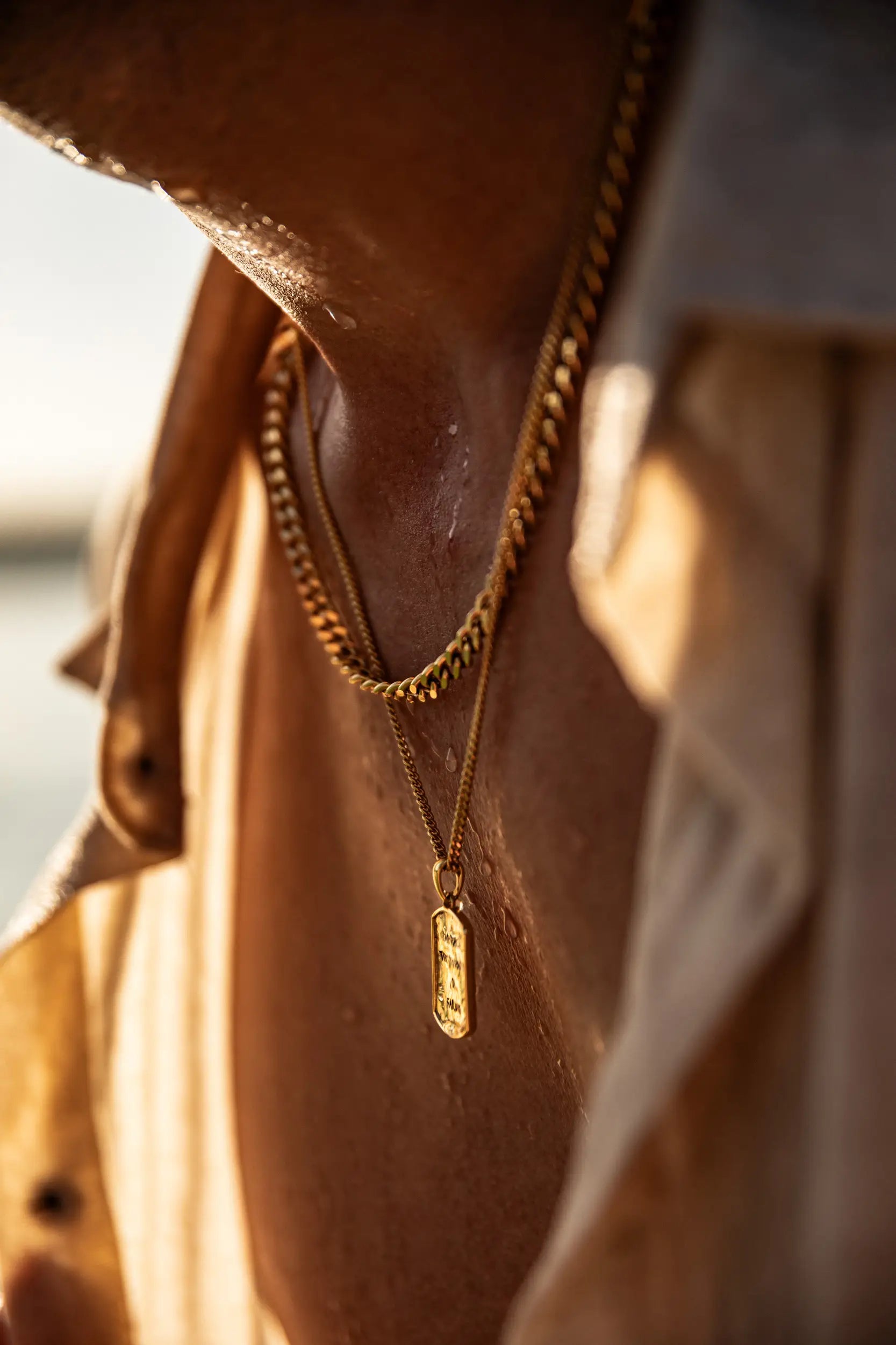 Une chaîne en acier inoxydable 316L, plaquée or 18 carats par procédé PVD, renommé pour sa résistance.