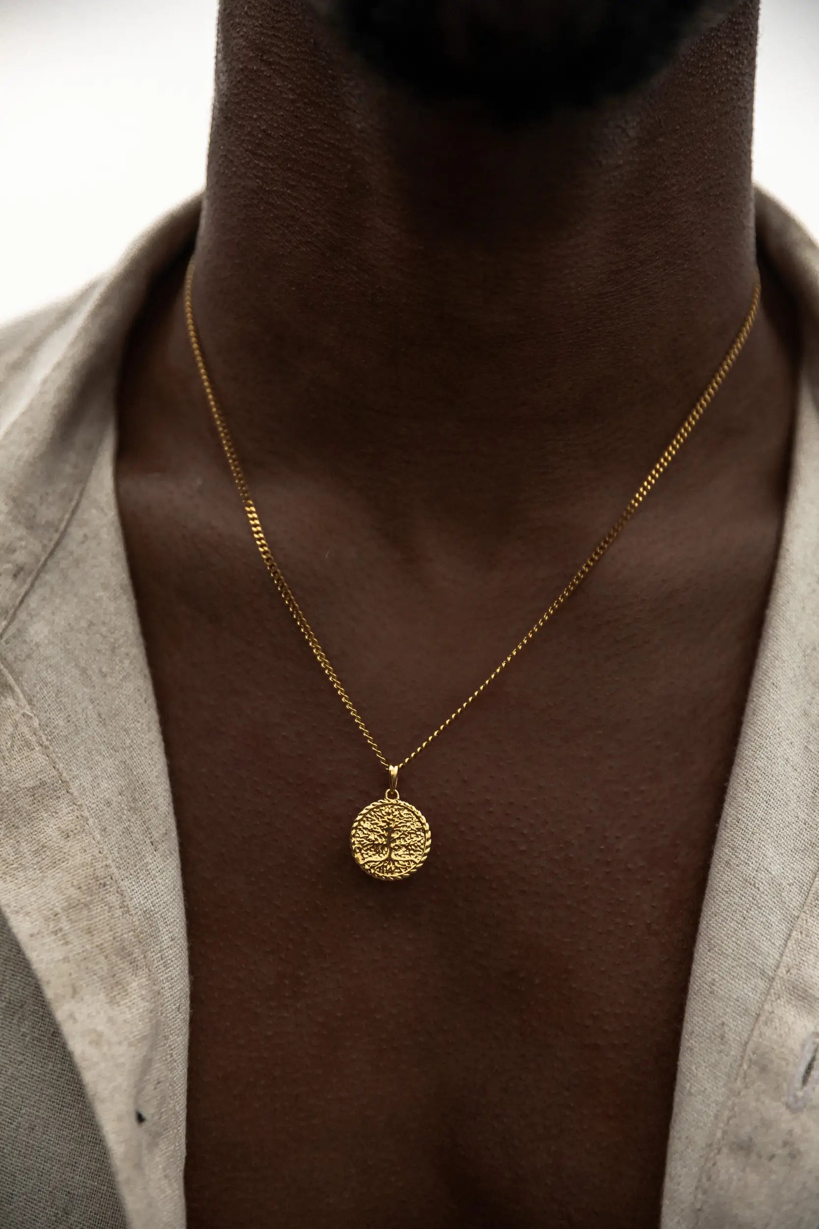 Une chaîne en acier inoxydable 316L, plaquée or 18 carats par procédé PVD, renommé pour sa résistance.