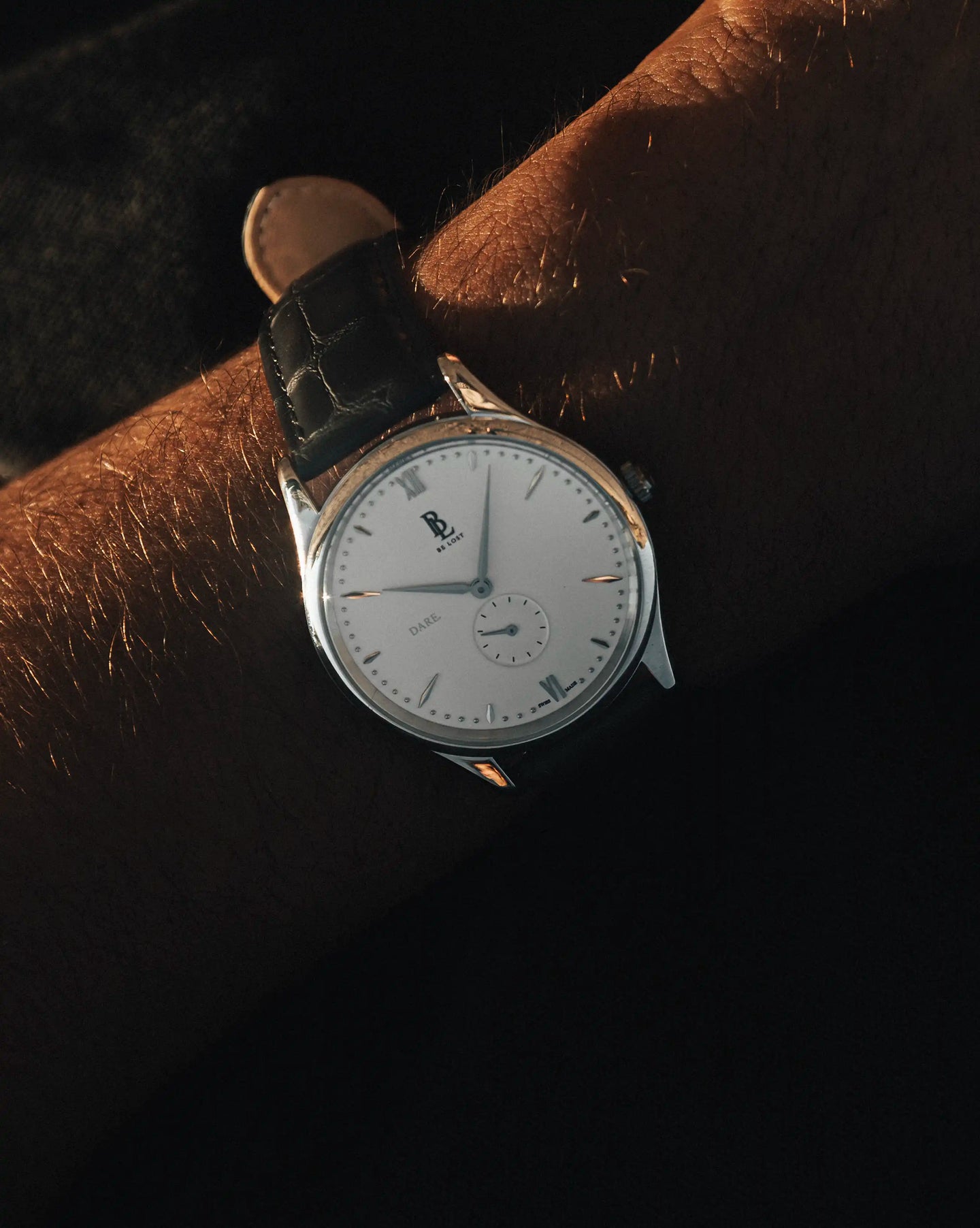 La collection DARE, née des mains d'artisans suisses renommés, incarne un mélange parfait de finesse et de rébellion. Chaque montre, par son design minimaliste, évoque discrètement notre passion pour l'authenticité et l'audace. Ces garde-temps ne sont pas de simples accessoires, mais des symboles puissants de l'esprit d'aventure qui caractérise Be Lost.